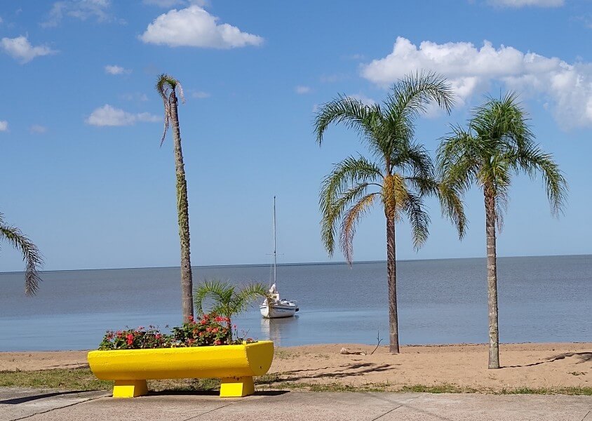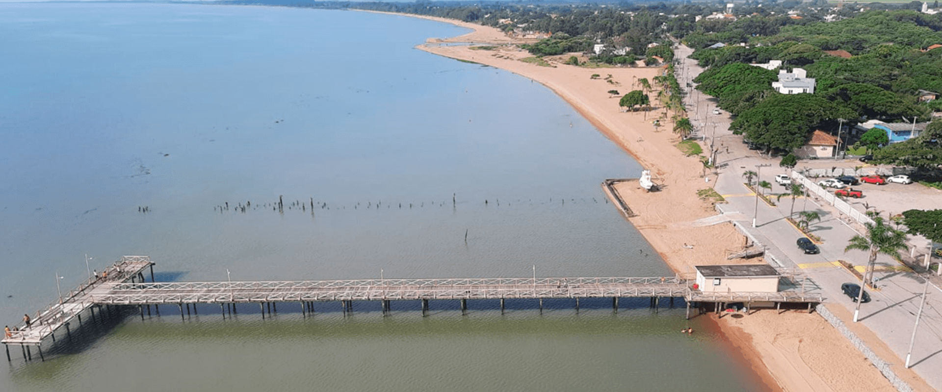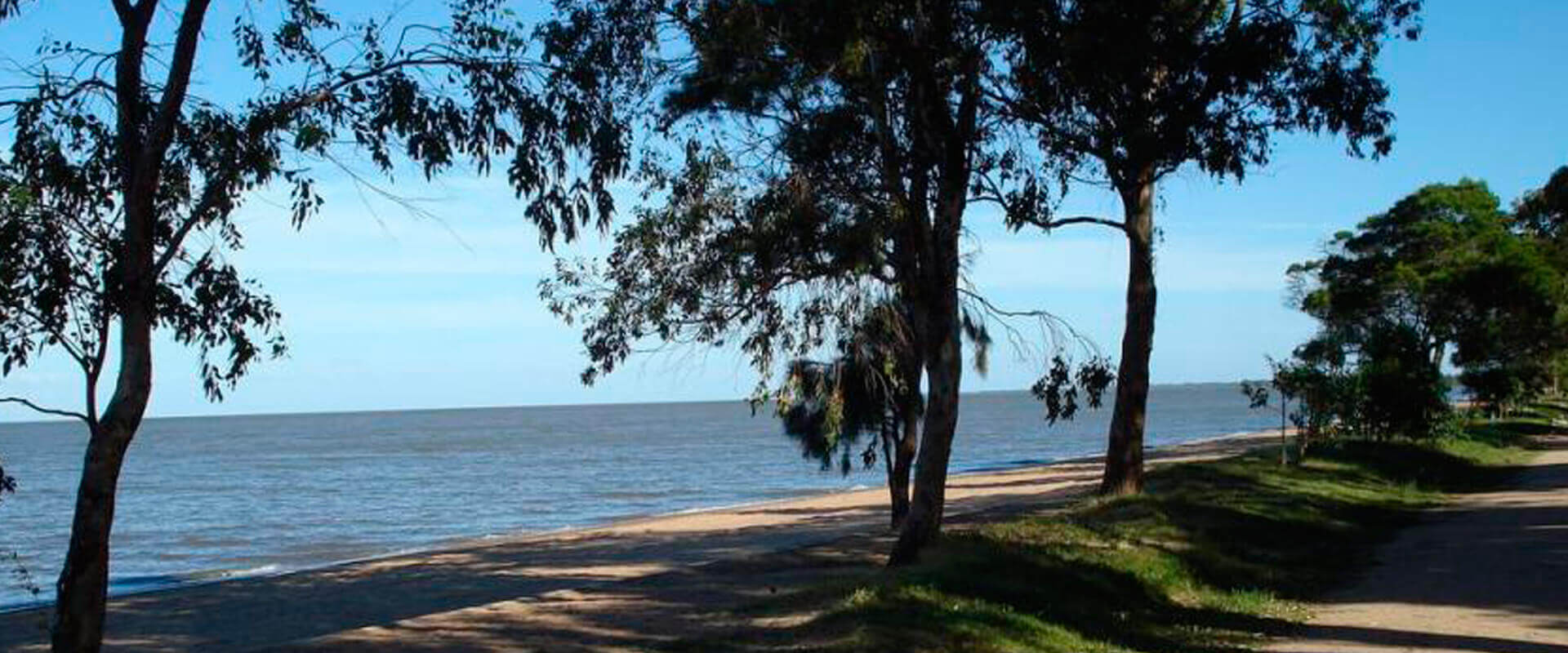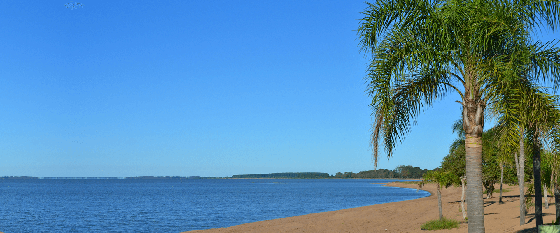 Muitas figueiras e árvores frondosas, sombra à beira da Laguna dos Patos, areias limpas e águas temperadas da praias te aguardam.